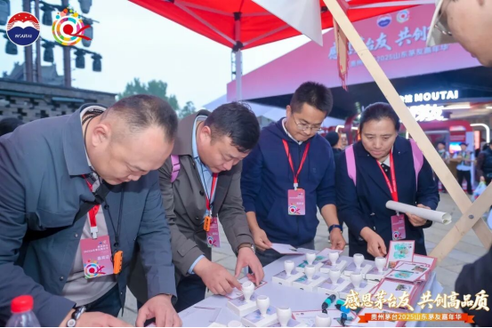 桂月之时,秋雨绵绵。在儒家文化的发源地,亭台映泉韵、青砖覆黛瓦,“沉醉不知归路”的易安词境悄然弥漫,领导嘉宾于此共启诗酒游园之旅,一同解锁诗酒游园的精彩。这场游园深度融合茅台文化、山东特色与明水古城清照文化,以多个互动演绎点位搭建沉浸式体验场景,茅友穿梭其中,集卡赢礼,在齐风鲁韵里与诗酒共鸣,与茅台的情感联结愈发紧密。在茅台馆,茅台产品、子公司产品及文创作品集中亮相,茅友们在此近距离感受茅台多元魅力,全方位领略茅台品牌风采。