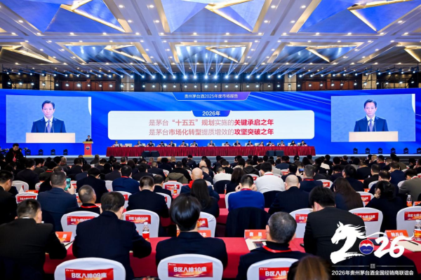 12月28日,2026年贵州茅台酒全国经销商联谊会在贵阳召开,会议以“坚持以消费者为中心,全面推进茅台酒营销市场化转型”为主题,全面总结2025年茅台酒营销工作成效,系统安排部署2026年工作,进一步统一思想、凝聚共识,推动茅台酒市场营销工作再上新台阶。