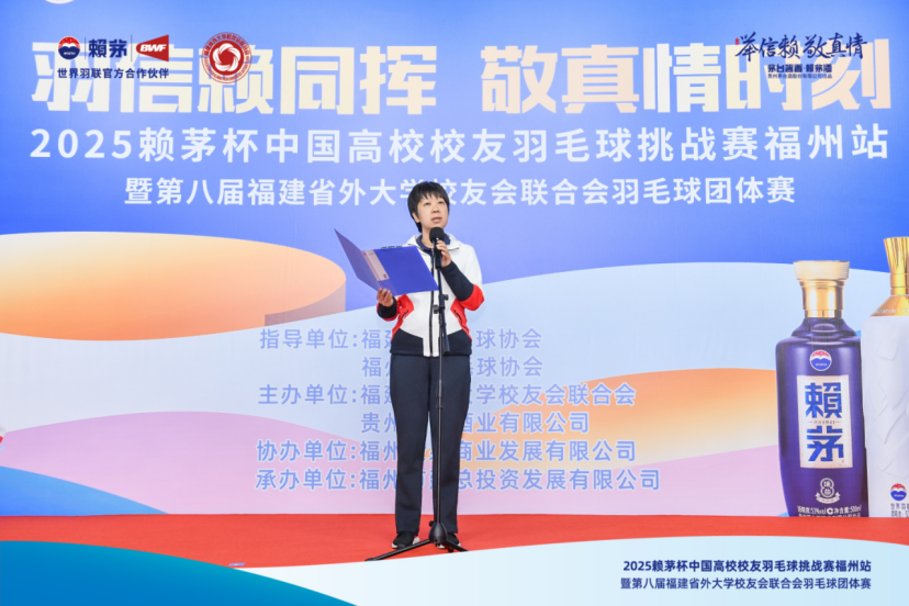 贵州赖茅酒业有限公司副总经理杨楠表示,福州已经连续六年举办赖茅杯高校赛,每一年都有不一样的感受,但校友们的热情是一样的。每一次精彩的挥拍、每一记奋力的扣杀,都展现出了校友们对母校的热爱和对校友情谊的珍视。